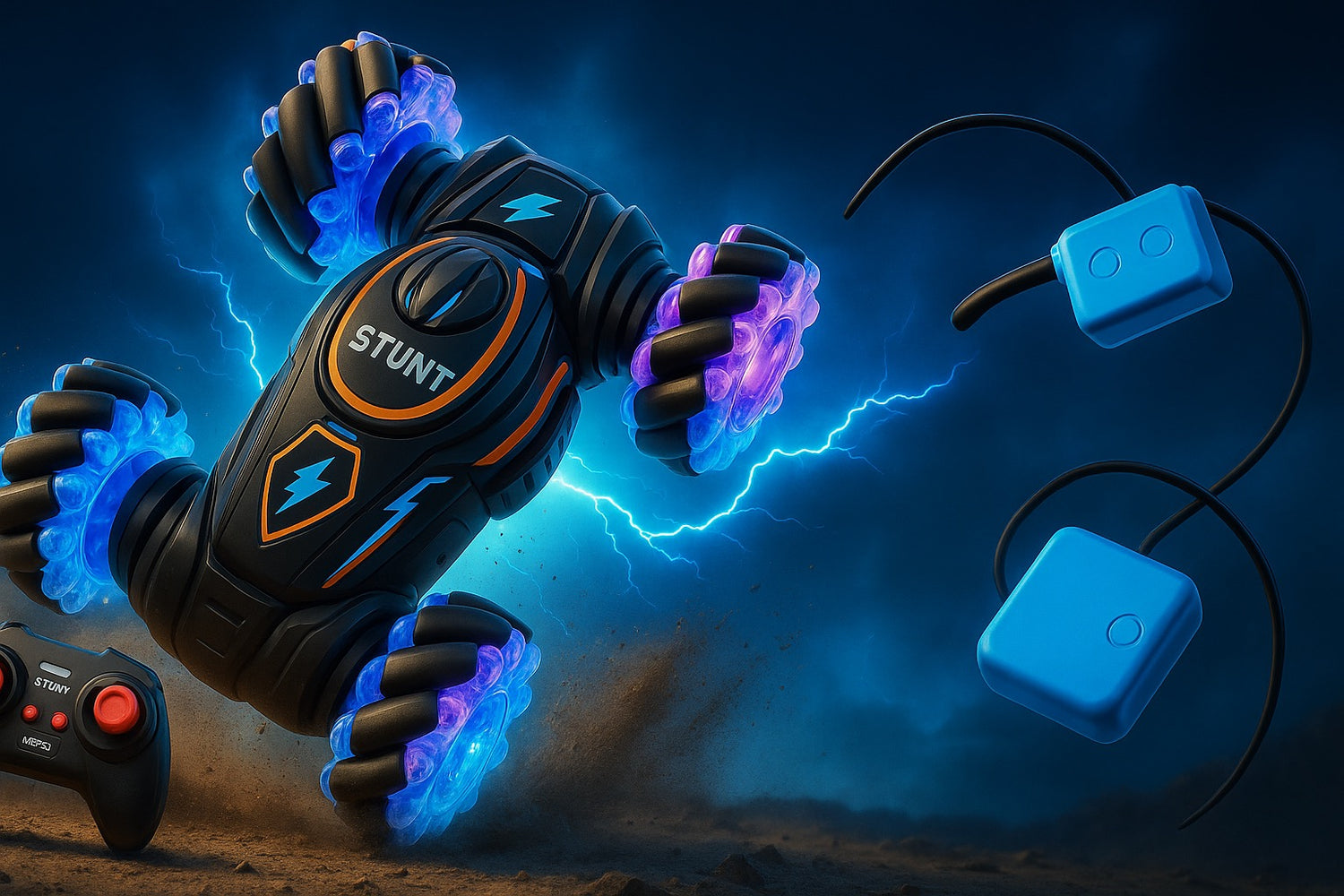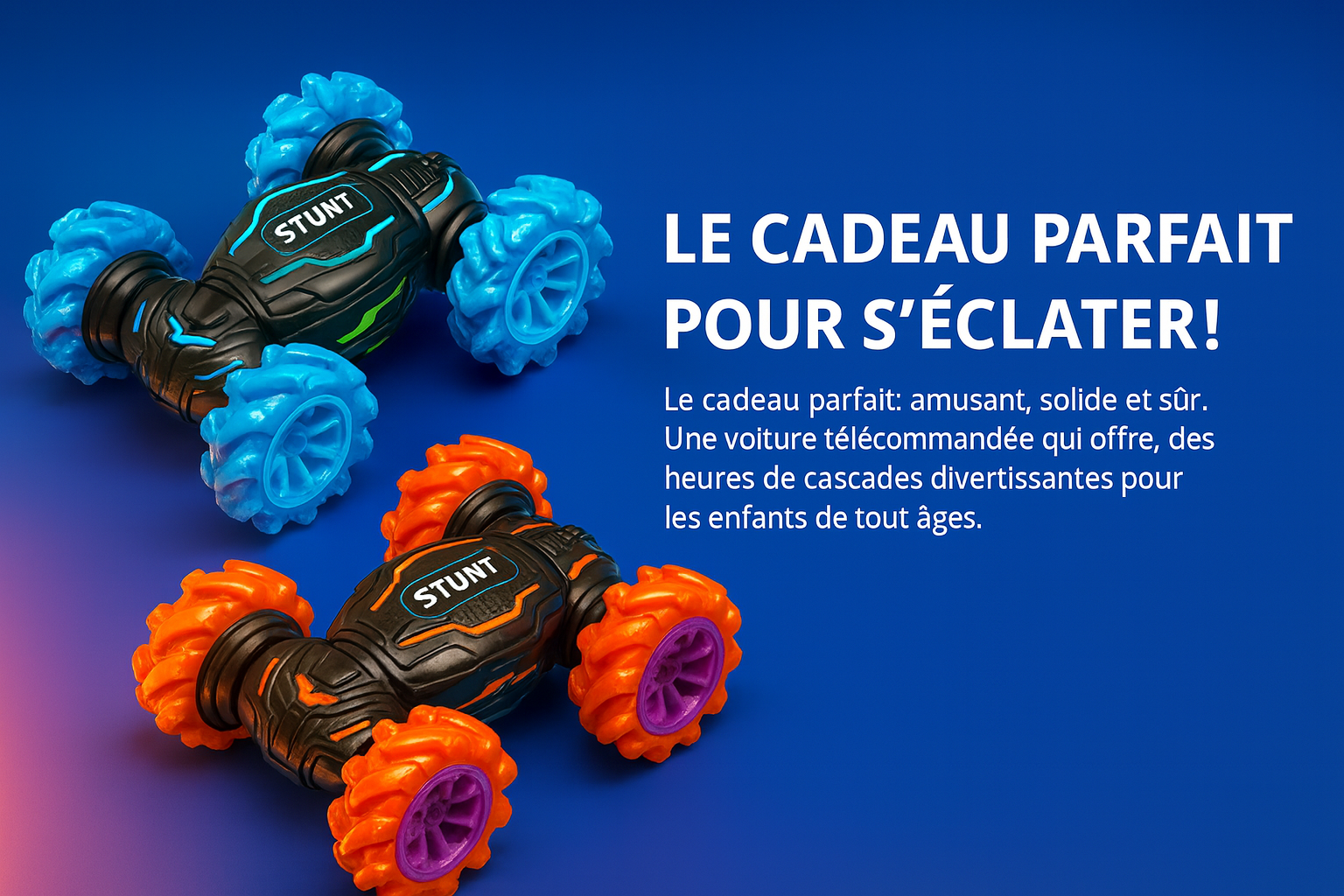 Notre Stunt Car lumineuse déploie des mouvements à 360°, des effets LED spectaculaires et une robustesse capable de survivre à toutes les aventures.