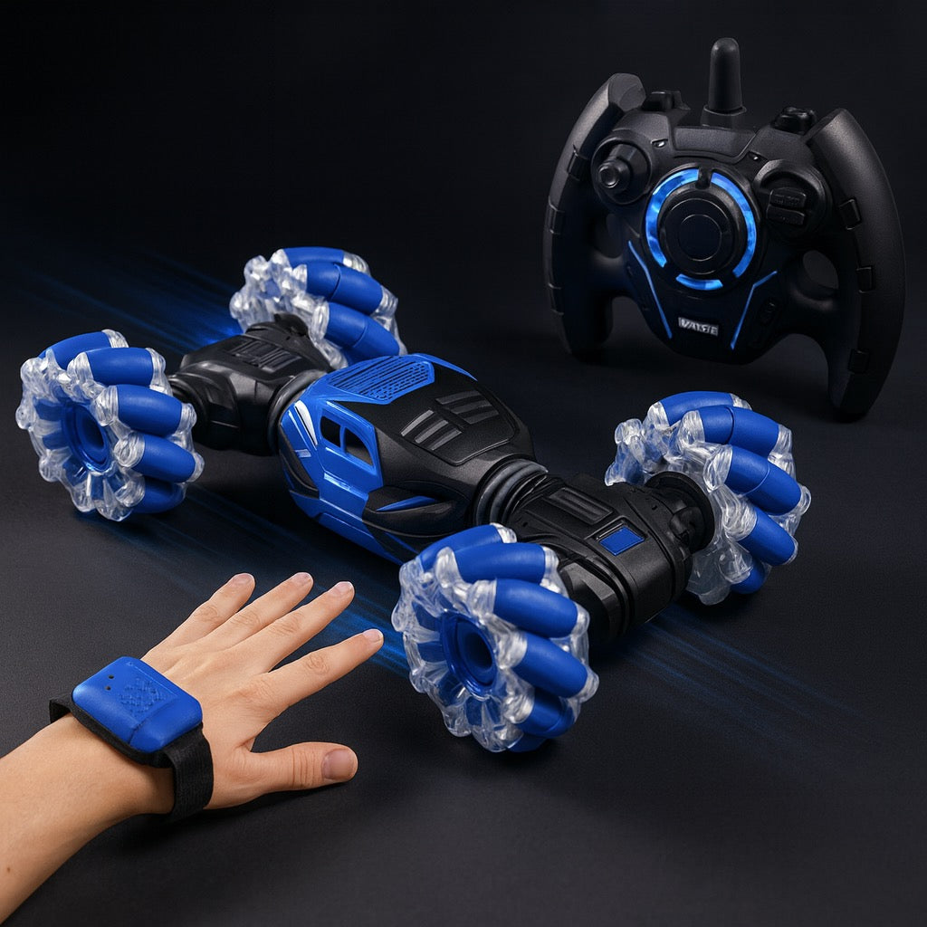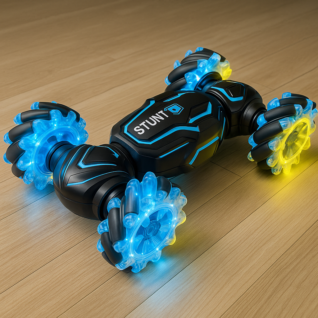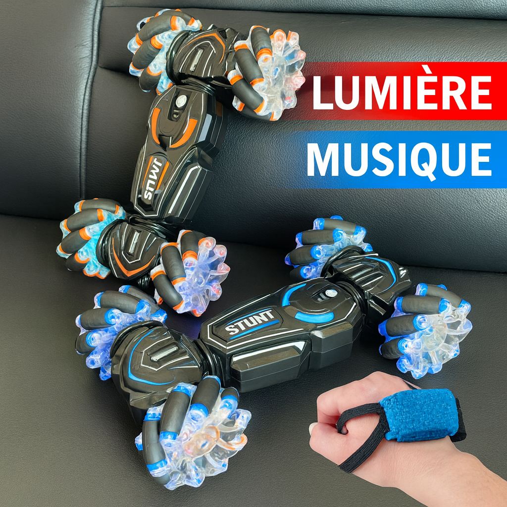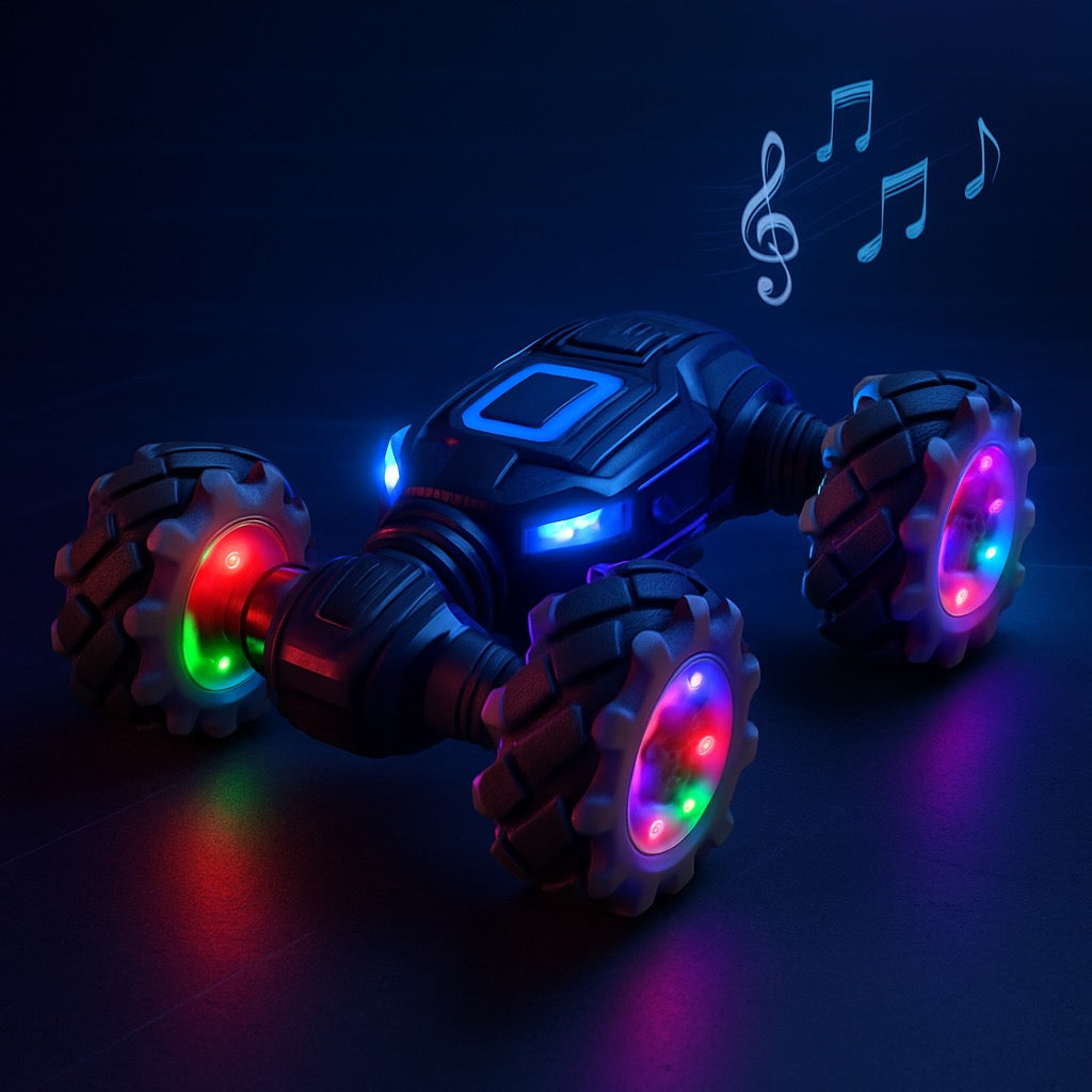 Notre Stunt Car lumineuse déploie des mouvements à 360°, des effets LED spectaculaires et une robustesse capable de survivre à toutes les aventures.